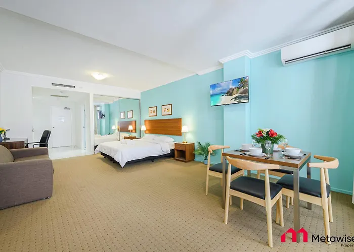 Die 1-Zimmer-Ferienwohnung Metawise 2Bed On Dixon Next To Icc & Darling Harbour 65 Sydney liegt im Herzen von Sydney. Ca. 20 Gehminuten von hier entfernt besuchen Sie auf jeden Fall das Sea Life Sydney Aquarium. Das Apartment mit einer Terrasse befindet sich in 250 Meter Entfernung vom Powerhouse Museum.